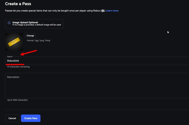 7) В пунтке «Name» ставим любое название для нашего GamePass и после нажимаем на кнопку «Create Pass».